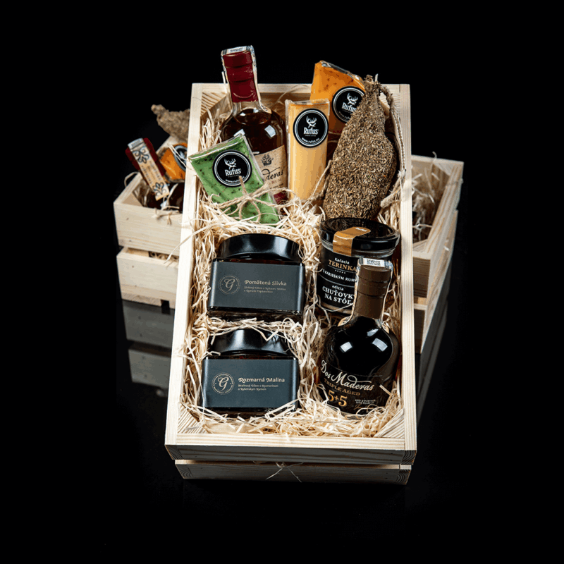Drevená debnička má rozmer 34cm (dĺžka) x 20cm (šírka) x 12 cm (výška). Darčekové balenie je zabalené do celofánu, aby ste sa už o nič viac nemuseli starať.